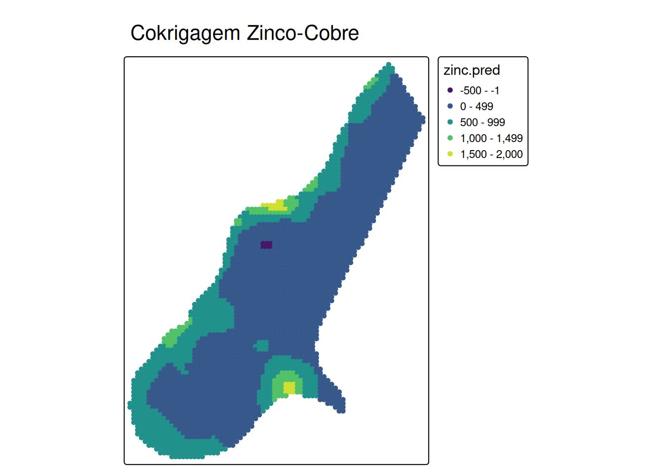 Usa uma variável secundária bem correlacionada (ex: Cobre) para melhorar a predição da variável primária (Zinco).
